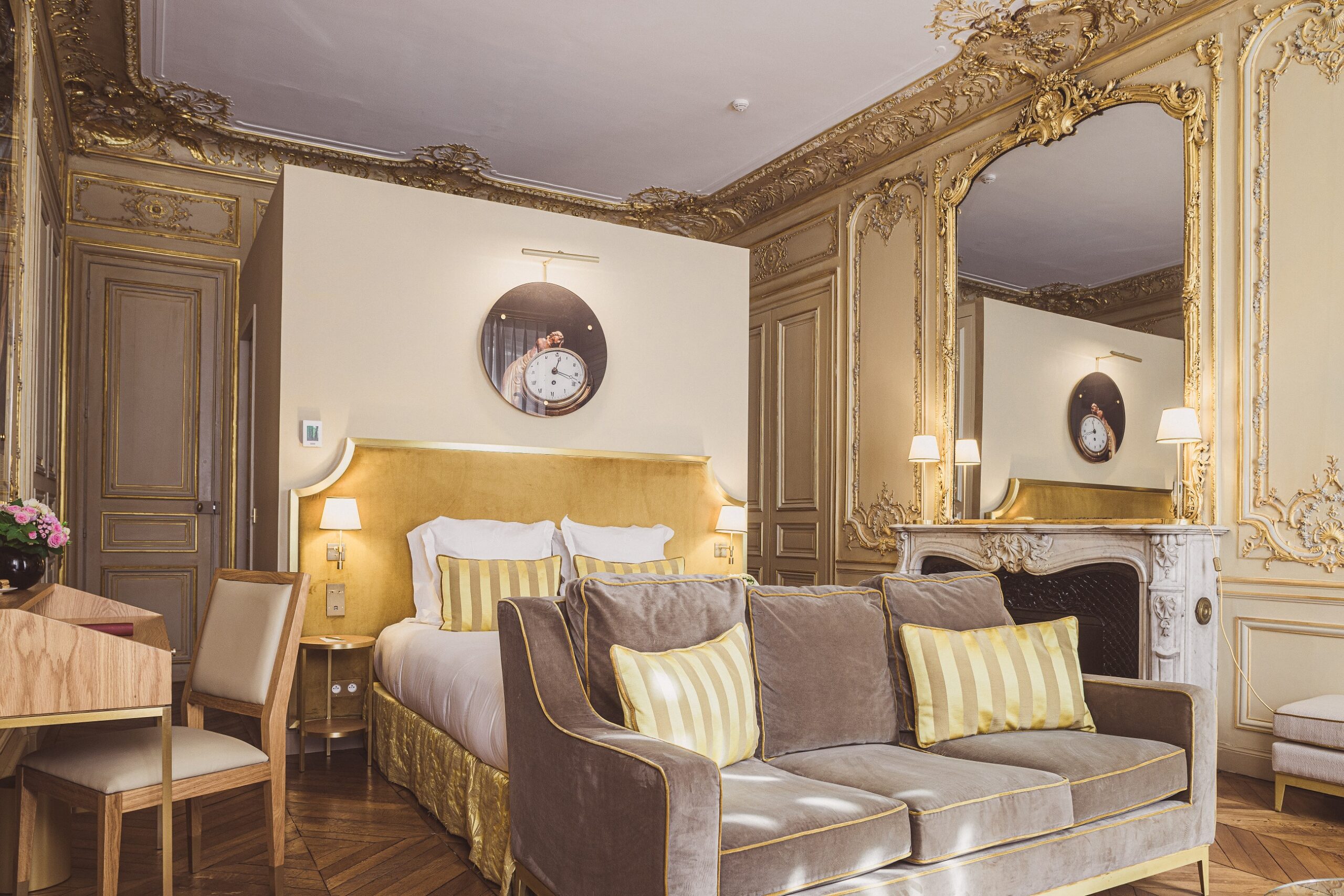 Avec le parquet point de Hongrie et les hautes fenêtres àcrémones, les chambres et les suites racontent près de deux siècles d’histoire. Lumineuses quel que soit l’étage, les chambres et les suites ont une élégance parisienne unique. Une hauteur sous plafond de plus de quatre mètres, où dorures et moulures répondent aux alcôves et cheminées en marbre.