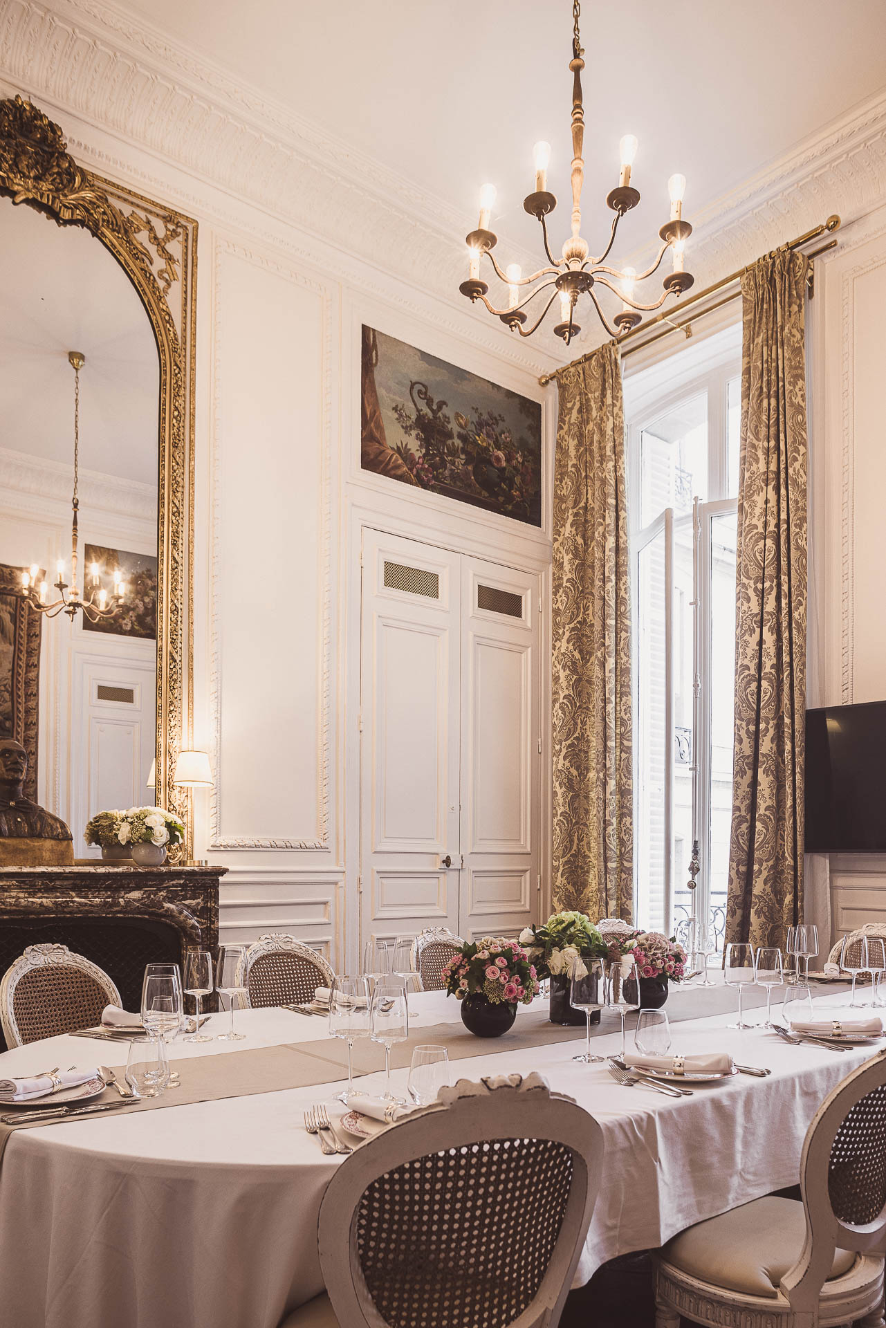 Donnant eux aussi sur l’écrin de verdure, trois magnifiques salons d’époque se transforment en salons d’événements. Loués séparément ou regroupés, les cinq salons offrent une variété de dispositions pour des réunions d’affaires et des fêtes privées. Les systèmes de communication les plus sécurisés y ont été intégrés.