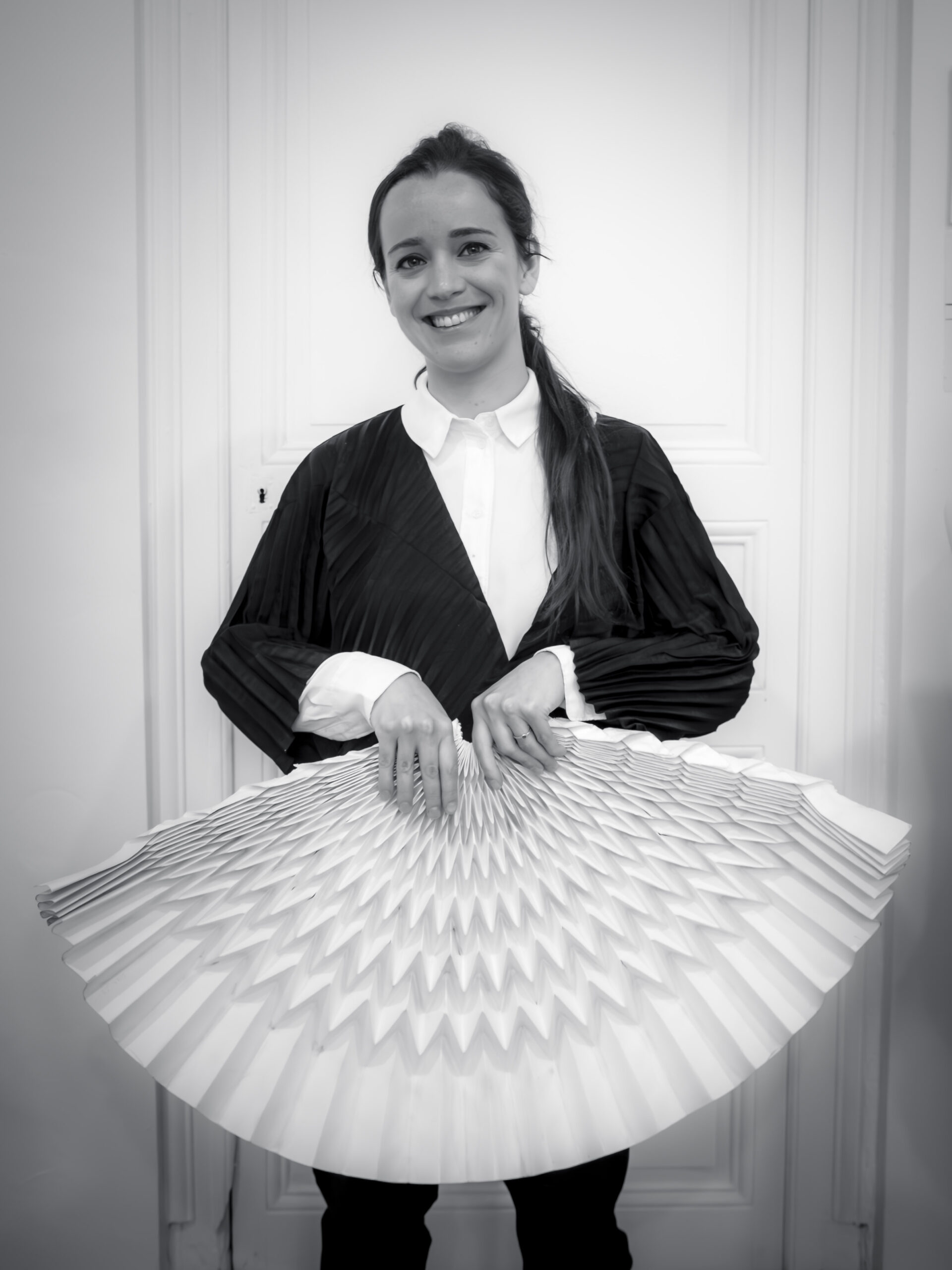 Jusqu’en 2022, Sarah Saint-Pol a conçu et plissé pour sa marque de manière exclusive, avant de bénéficier d’un accompagnement de la Région Nouvelle-Aquitaine, du GrandAngoulême et plus récemment de la Fondation Cré’Atlantique pour diversifier son activité et mettre ses compétences au service du design, de l’acoustique, du packaging et de la scénographie.